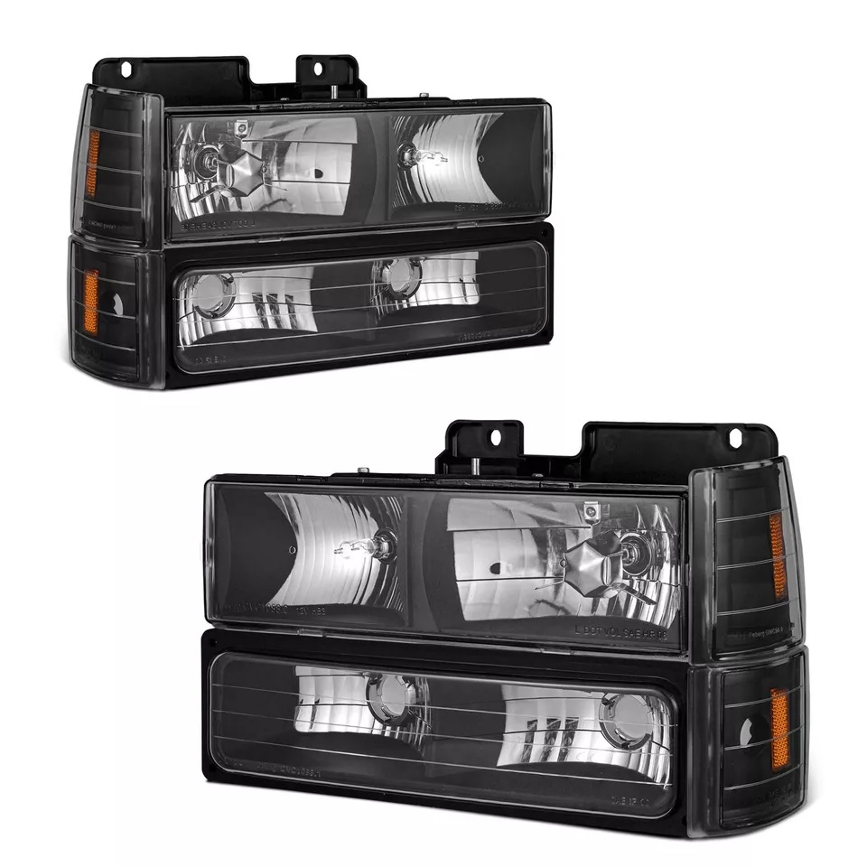 Fleetwood Discovery Clear Lens Black Headlights, Turn Signal Lights, Side Markers 8 Piece Set (Left & Right)
